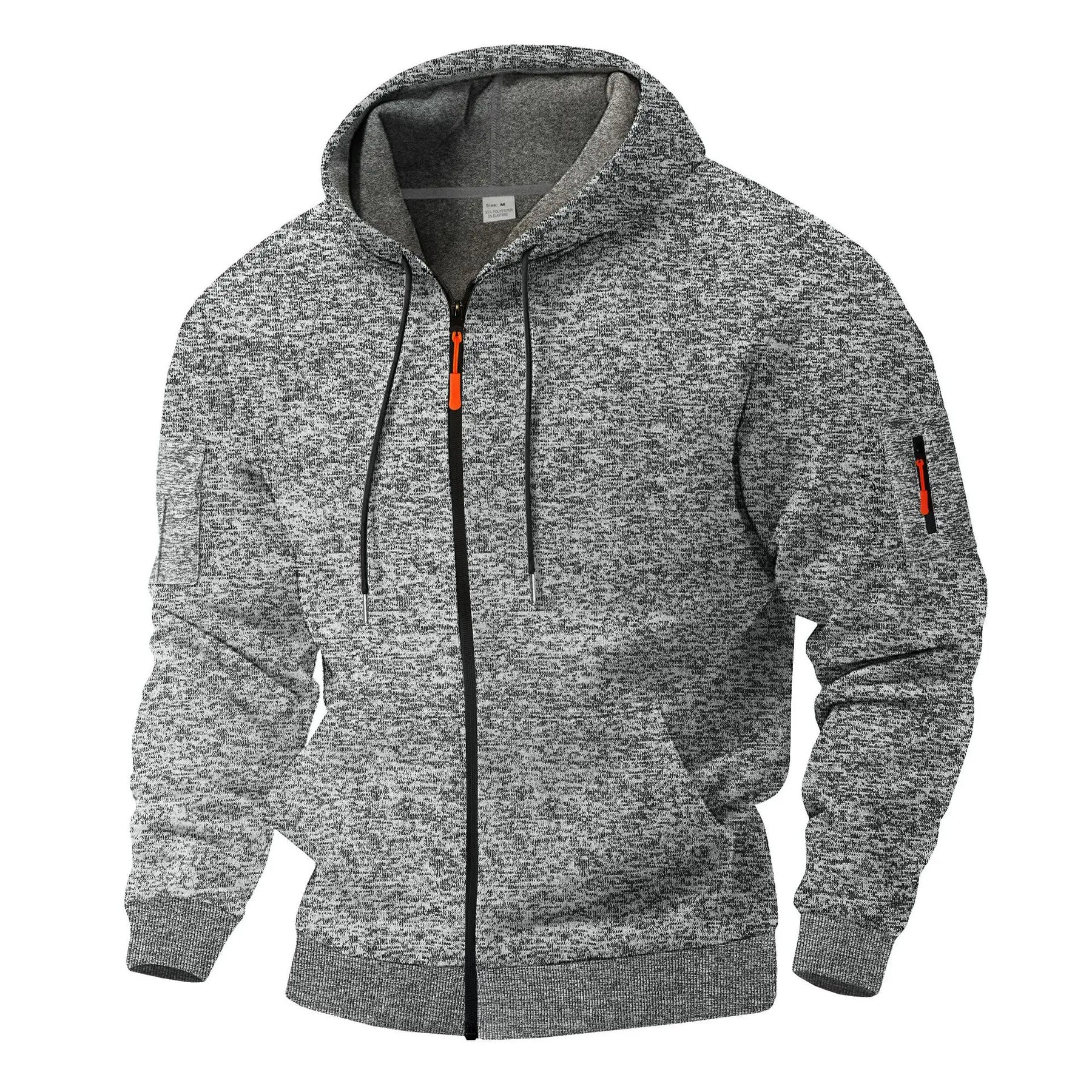 This hoodie features a full front zipper, an adjustable drawstring hood, and a textured knitted look. The ribbed cuffs and hem keep the fit neat, while the sleeve pocket adds a practical touch. Its soft interior and structured shape make it an easy go-to piece for relaxed days or outdoor moments.