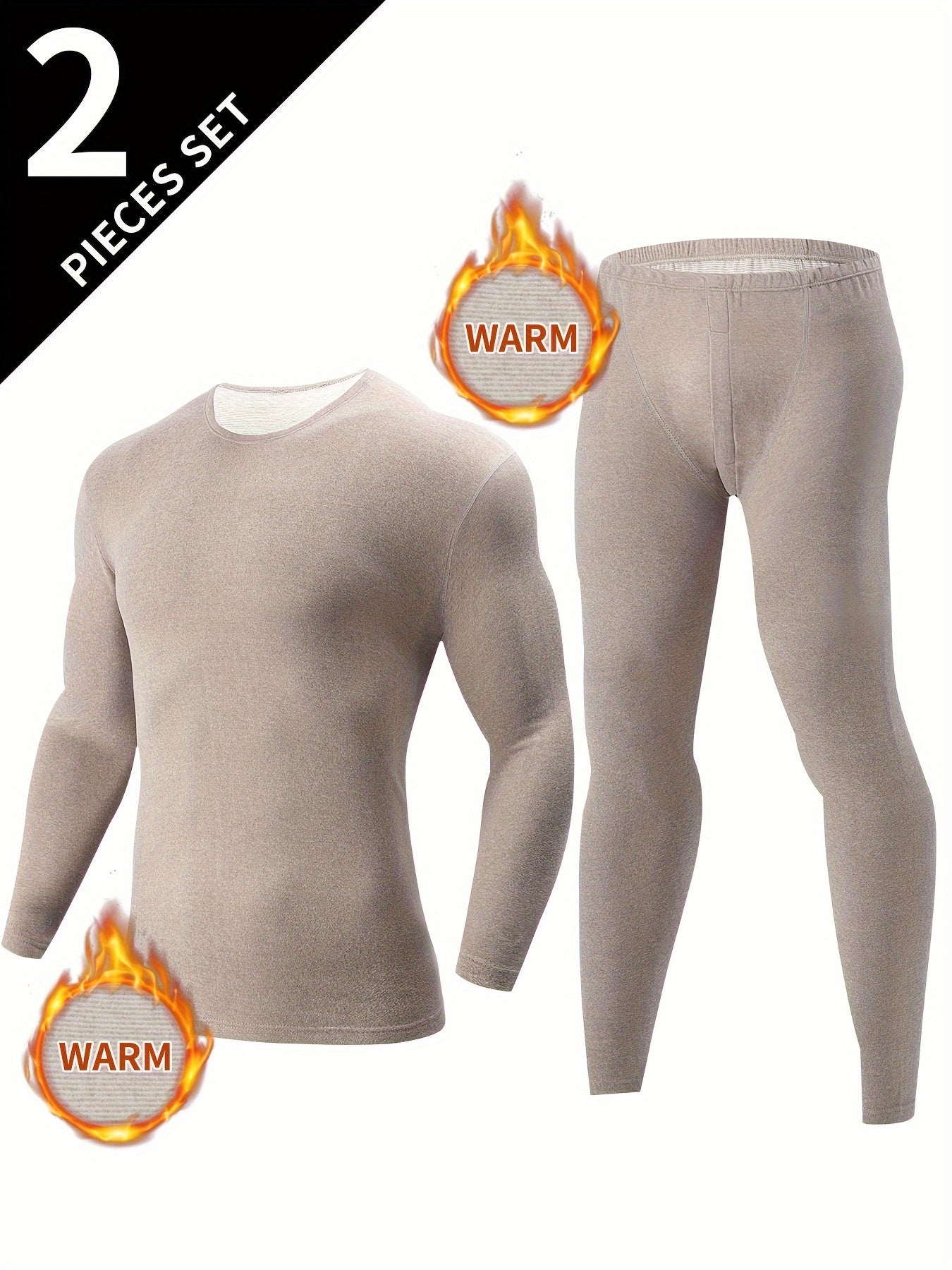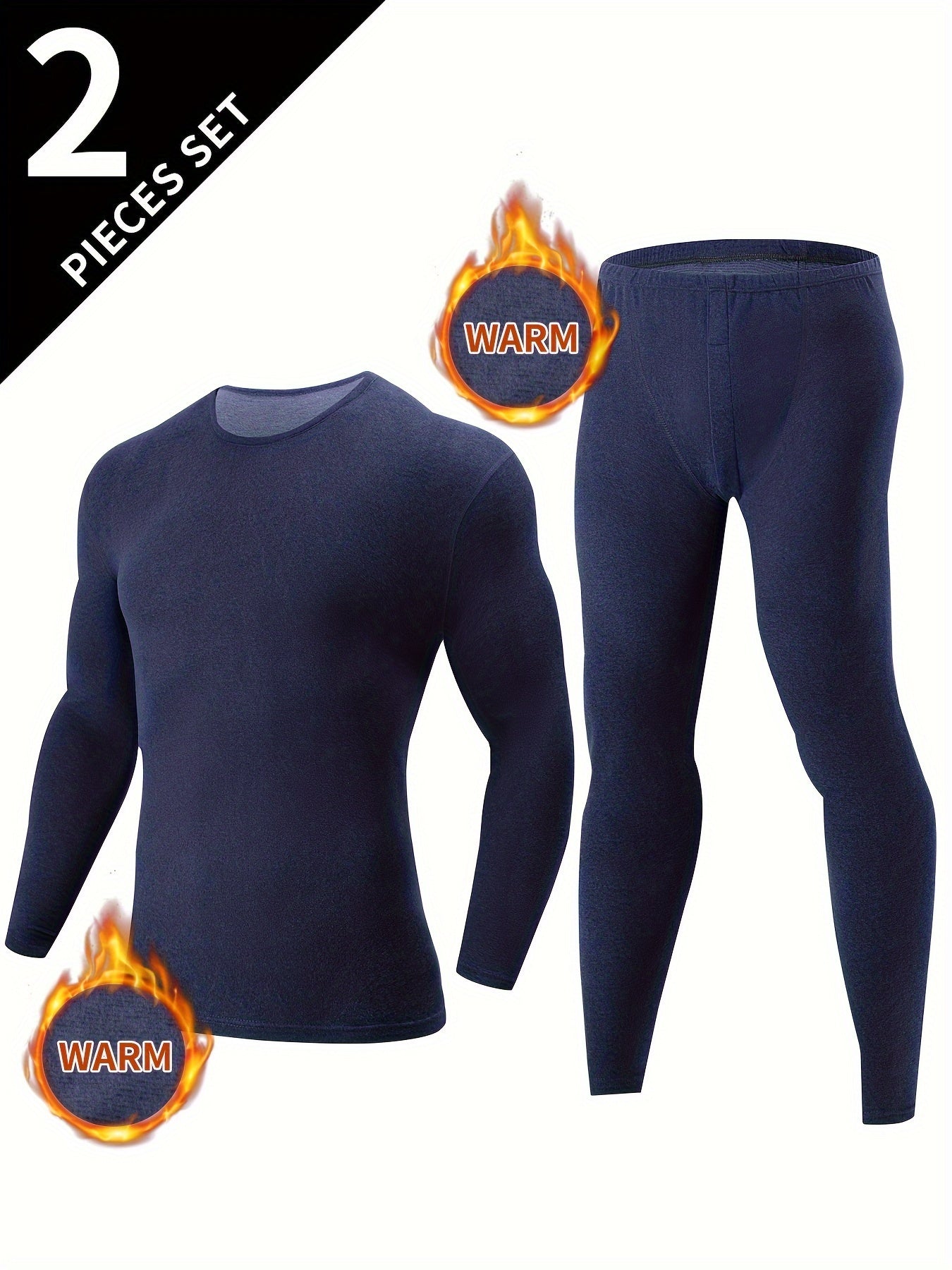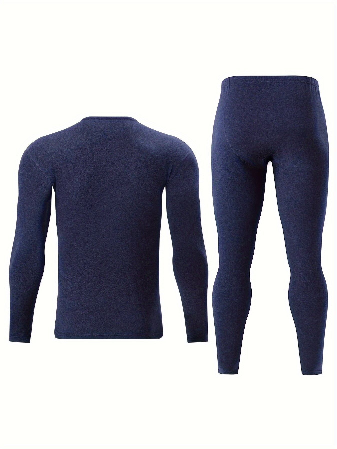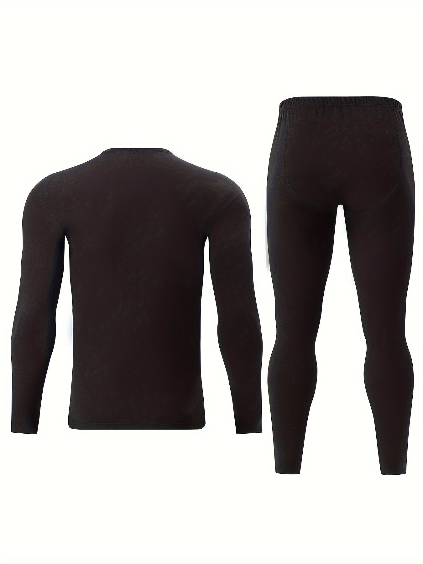 The set includes a fitted long-sleeve top and matching bottoms with a smooth, clean look. Both pieces feature a simple, practical design ideal for layering under daily outfits. The material appears soft, stretchy, and snug, offering a streamlined silhouette perfect for colder days and outdoor routines.
